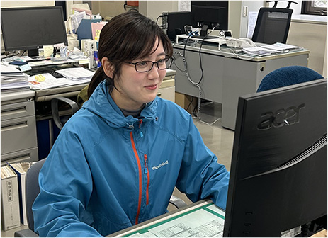事業部事業課の施設管理係として、本社ビルの管理業務を担当しながら、自社保有不動産に関するさまざまな業務に携わっています。