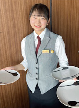 当社レストランにおいて、テーブルセットやお料理・ドリンク提供などのサービス業務を行っています。
